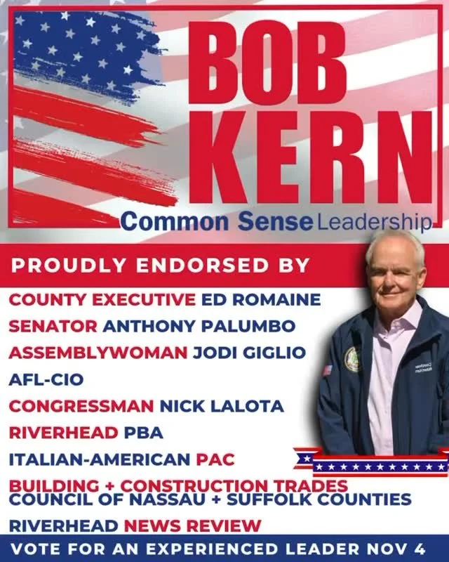 Join us for an evening in support of Councilman Bob Kern’s re-election campaign! Enjoy light fare and good company as we rally to keep Riverhead moving forward. Bob has been a consistent advocate for responsible growth, revitalization, and the well-being of our community — and your support will help keep that momentum going.
